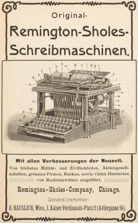 Werbeanzeige für Schreibmaschine Remington-Sholes monochrom