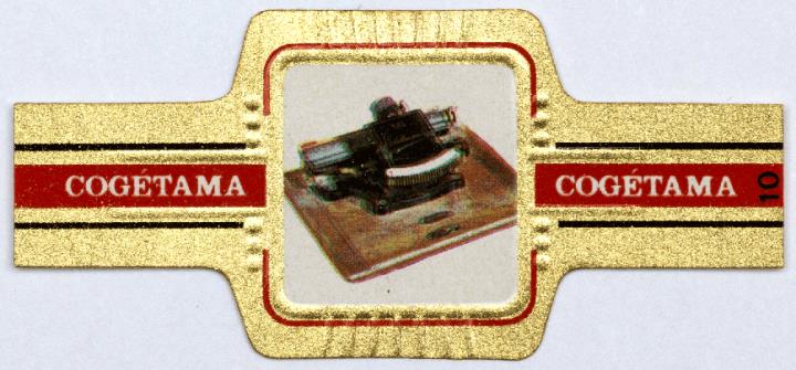 Zigarrenbanderole einer Serie (Cogétama); polychrom Nr. 10/24. Eintasterschreibmaschine Edelmann, 1898