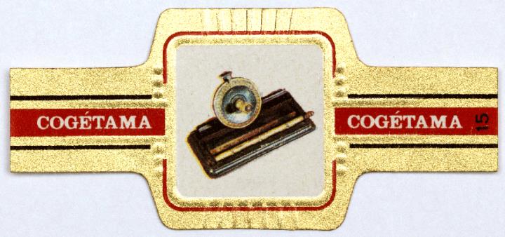 Zigarrenbanderole einer Serie (Cogétama); polychrom Nr. 15/24. Eintasterschreibmaschine Simplex (Eureka), 1908