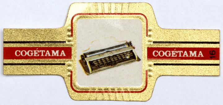 Zigarrenbanderole einer Serie (Cogétama); polychrom Nr. 16/24. Schreibmaschine Bennett, 1910