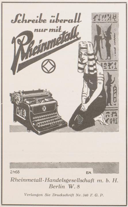 Werbeanzeige für Schreibmaschine Rheinmetall monochrom