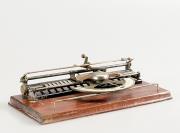 Schreibmaschine World 1 Eigenschaften: Zeiger, Typenplatte aus Gummi (fehlt), Großbuchstaben, Oberanschlag, Farbkissen (fehlt) Konstrukteur: John Becker