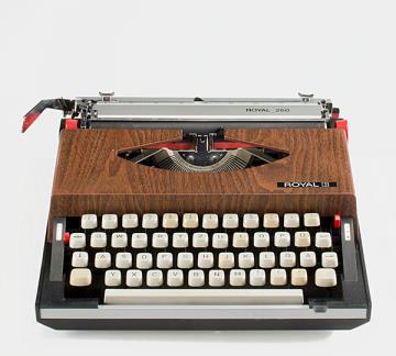 Schreibmaschine Royal 260 mit in der Abdeckung integriertem Transistorradio Eigenschaften: Typenhebel, Vorderanschlag, einfache Umschaltung, Farbband Tastatur: universal, vierreihig, 48 Schreibtasten