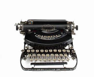 Schreibmaschine Garbell Portable Modell 3 Eigenschaften: Typenstangen, Vorderanschlag, doppelte Umschaltung, Farbband Tastatur: universal, dreireihig, 28 Schreibtasten Konstrukteur: Max Garbell Besonderheit: gezähnte Verbindung zwischen Typenstange und Typenhebel