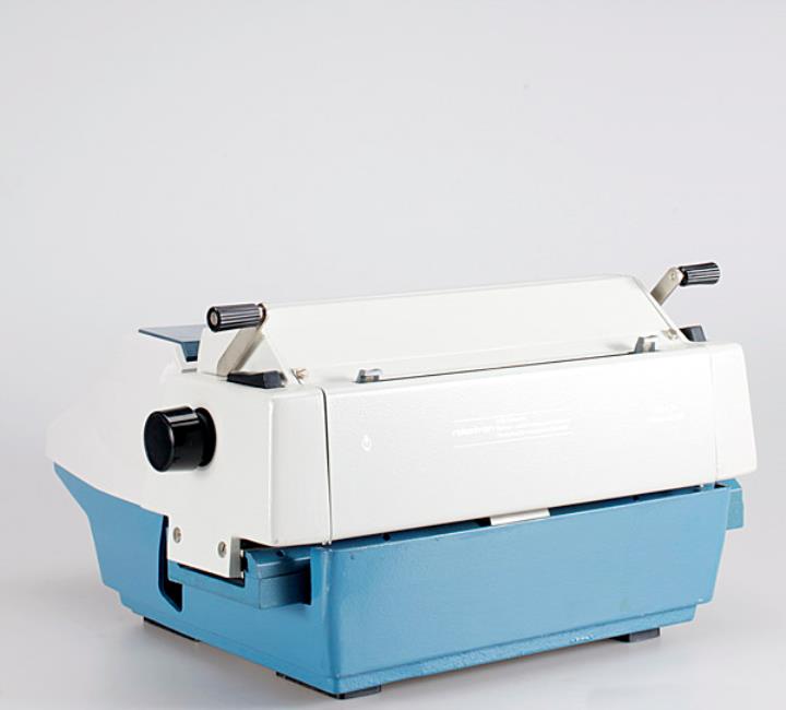 Schreibmaschine Robotron Modell 70 Eigenschaften: Typenhebel, Vorderanschlag, Farbband, gerillte Metallwalze Tastatur: universal, vierreihig, 44 Schreibtasten Besonderheit: von den Behörden der DDR zur Beschriftung von Reisepässen und Führerscheinen verwendet, Seriennummer 9981118