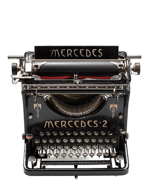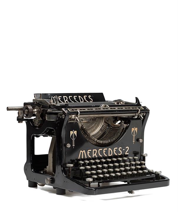 Schreibmaschine Mercedes 2 Eigenschaften: Typenhebel, Vorderanschlag, einfache Umschaltung, Farbband Tastatur: universal, vierreihig, 45 Schreibtasten Konstrukteur: Carl Schlüns Besonderheit: erste zerlegbare Schreibmaschine, Seriennummer 8047