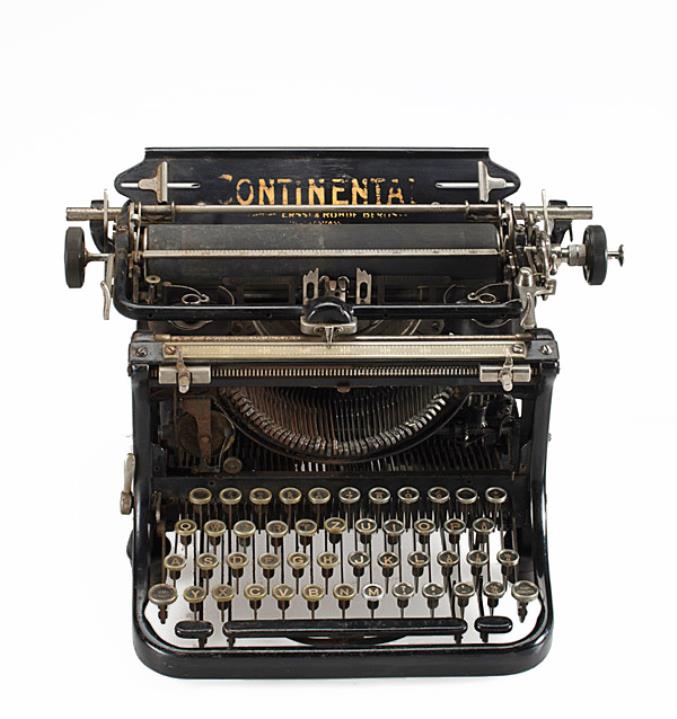 Schreibmaschine Continental; ohne Frontabdeckung Eigenschaften: Typenhebel, Vorderanschlag, einfache Umschaltung, Farbband Tastatur: universal, vierreihig, 45 Schreibtasten Konstrukteur: Julius Mohns Vertrieb: Ernst & Rohde, Berlin, Seriennummer 33911