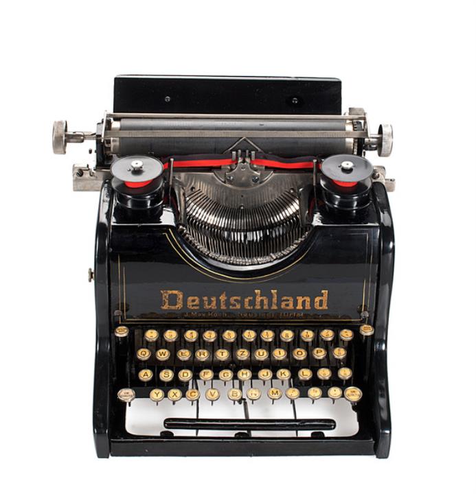Schreibmaschine Deutschland (Minerva) Eigenschaften: Typenhebel, Vorderanschlag, einfache Umschaltung, Farbband Tastatur: universal, vierreihig, 43 Schreibtasten Konstrukteur: Carl Friedrich Kührt Vertrieb: J. Max Koch / Neustadt a.d. Orla, Seriennummer 14502