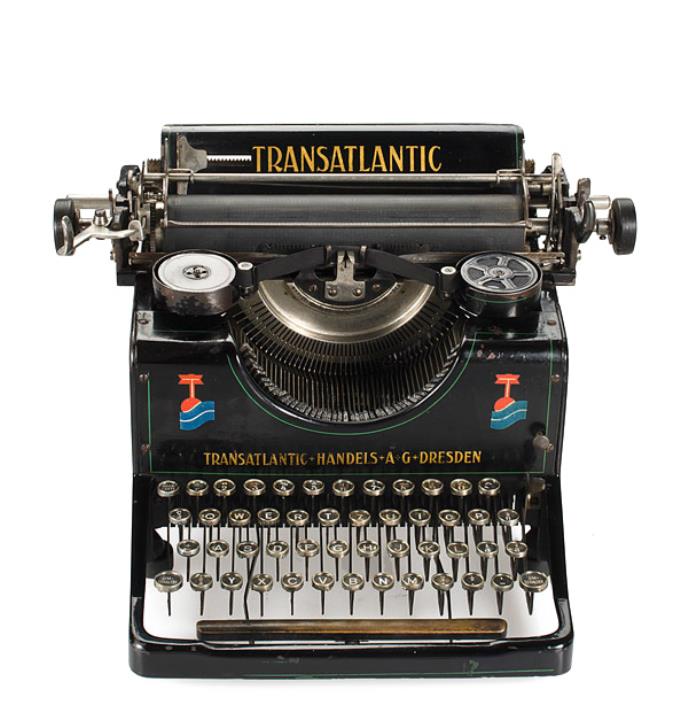 Schreibmaschine Transatlantic (Venus) Eigenschaften: Typenhebel, Vorderanschlag, einfache Umschaltung (Wagen), Farbband Tastatur: universal, vierreihig, 46 Schreibtasten Konstrukteur: Reinhold Müller, Richard Kretzschmar Vertrieb: Transatlantic-Handels-A.G. / Dresden, Seriennummer 738
