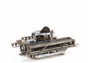 Schreibmaschine Blickensderfer Featherweight (Modell 6) Rahmenunterseite mit Prägestempel "B. Mfg. Co. 501 Special" Eigenschaften: Typenzylinder, Oberanschlag, doppelte Umschaltung, Farbröllchen, ausklappbare Leertaste Tastatur: ideal, dreireihig, 28 Schreibtasten Konstrukteur: George Canfield Blickensderfer Besonderheit: austauschbarer Typenträger; leichteste Tastaturschreibmaschine ihrer Zeit, Seriennummer 149951