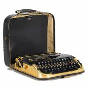 Schreibmaschine Princess 300 Praesent mit Lederkoffer Eigenschaften: Typenhebel, Vorderanschlag, einfache Umschaltung, Farbband, Tabulator Tastatur: universal, vierreihig, 44 Schreibtasten Konstrukteur (vermutet): Franz Waschke Besonderheit: Metallteile in 14-K-Vergoldung