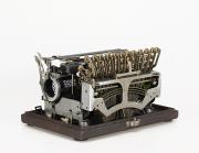 Schreibmaschine Dactyle Modell 3 (Blickensderfer 7); auf Unterboden der Holzabdeckung montiert Eigenschaften: Typenzylinder, Oberanschlag, doppelte Umschaltung, Farbröllchen Tastatur: ideal, dreireihig, 28 Schreibtasten Konstrukteur: Octave Rocheford, George Canfield Blickensderfer Besonderheit: austauschbarer Typenträger
