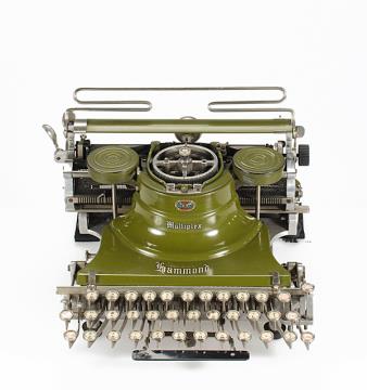 Schreibmaschine Hammond Multiplex (grün) Eigenschaften: Typensegment, Druckhammeranschlag, doppelte Umschaltung, Farbband Tastatur: universal, dreireihig, 30 Schreibtasten Konstrukteur: James Bartlett Hammond Besonderheit: produziert für die U.S.-Streitkräfte; berühmter Besitzer einer grünen Multiplex war der amerikanische Präsident Woodrow Wilson