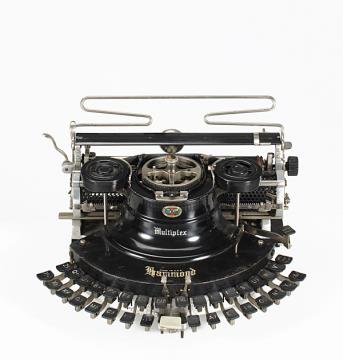 Schreibmaschine Hammond Multiplex (schwarz) Eigenschaften: Typensegment, Druckhammeranschlag, doppelte Umschaltung, Farbband Tastatur: halbrund, ideal, zweireihig, 30 Schreibtasten Konstrukteur: James Bartlett Hammond Besonderheit: austauschbarer Typenträger