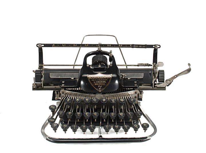 Schreibmaschine Blickensderfer Modell 7 Eigenschaften: Typenrad, Oberanschlag, doppelte Umschaltung, Farbröllchen Tastatur: ideal, dreireihig, 28 Schreibtasten Konstrukteur: George Canfield Blickensderfer Besonderheit: austauschbarer Typenträger, Seriennummer 132198