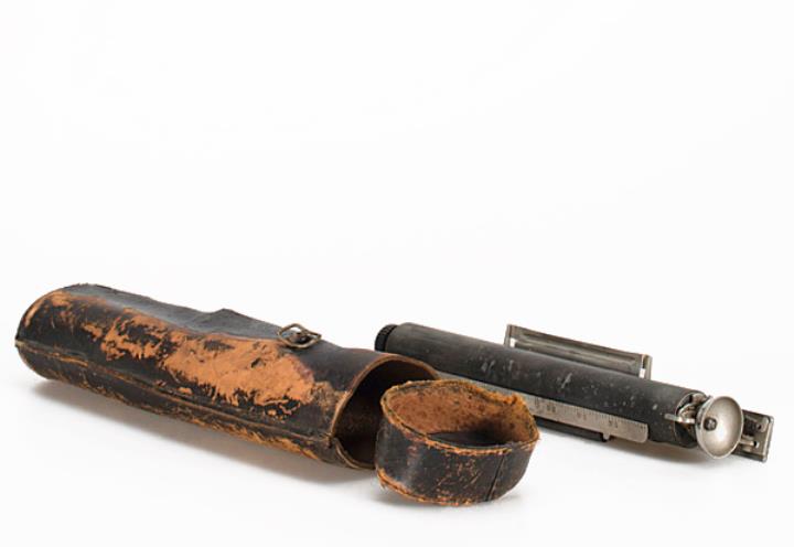 Schreibwalze für Schreibmaschine Weltblick mit Originalbehälter aus Leder Die Schreibmaschine wurde separat transportiert (Inv. Nr. 001378)