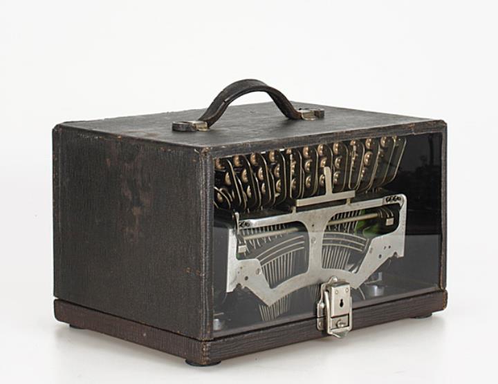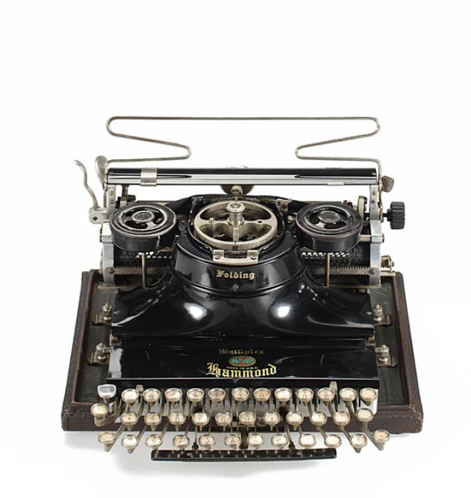 Klappbare Schreibmaschine Hammond Multiplex Folding mit Tragekoffer Eigenschaften: Typensegment, Druckhammeranschlag, doppelte Umschaltung, Farbband Tastatur: universal, dreireihig, 32 Schreibtasten (2 leer) Konstrukteur: Carl Otto Noack, Edward Krusius Besonderheit: austauschbarer Typenträger, Seriennummer F237939