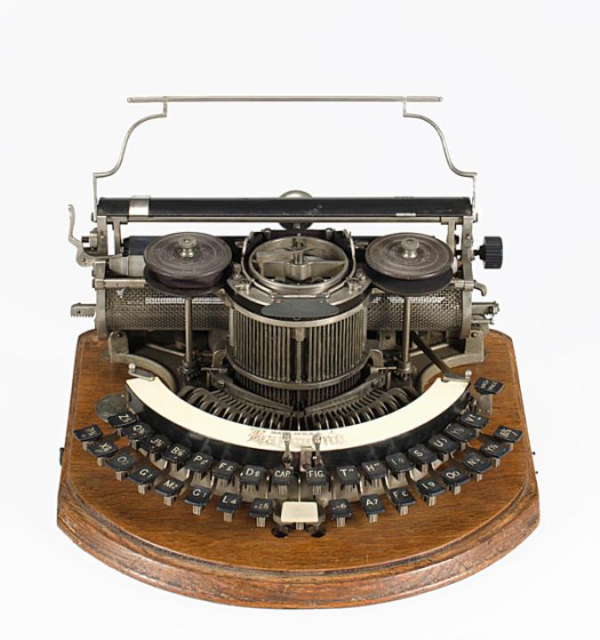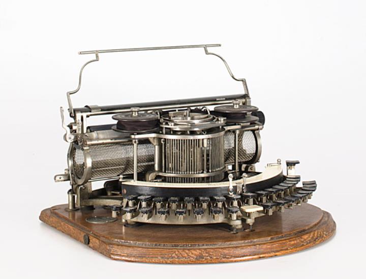 Schreibmaschine Hammond 12; auf Unterboden der Holzabdeckung montiert Eigenschaften: Typensegment, Druckhammeranschlag, doppelte Umschaltung, Farbband Tastatur: halbrund, ideal, zweireihig, 30 Schreibtasten Konstrukteur: James Bartlett Hammond Besonderheit: austauschbarer Typenträger, Seriennummer 41328