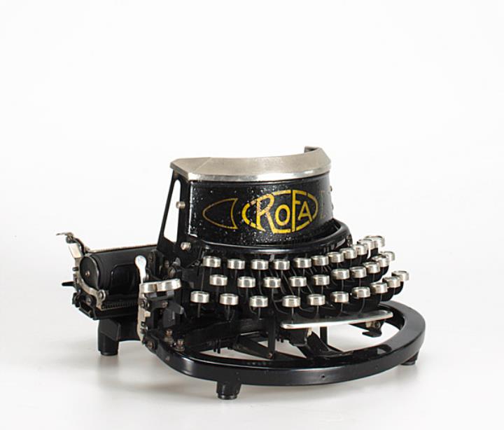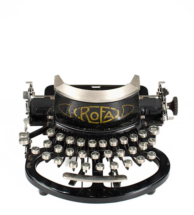 Schreibmaschine Rofa Eigenschaften: Typenhebel stehend, Oberanschlag, doppelte Umschaltung, Farbröllchen Tastatur: halbrund, universal, dreireihig, 30 Schreibtasten Konstrukteur: Robert Fabig, Seriennummer 19377