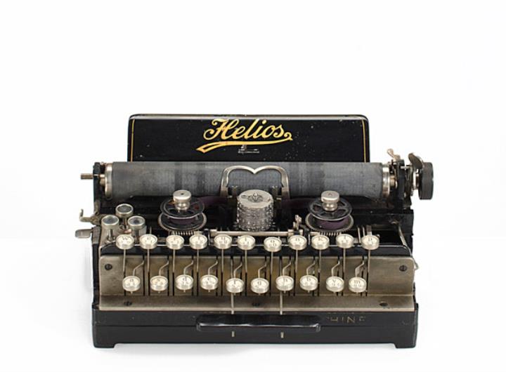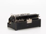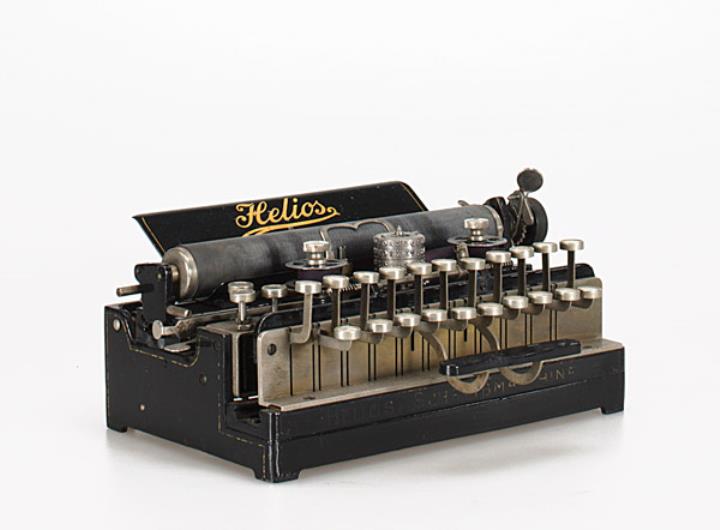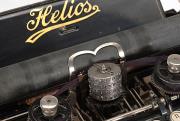 Schreibmaschine Helios Eigenschaften: Typenzylinder, Vorderanschlag, dreifache Umschaltung, Farbband Tastatur: universal, zweireihig, 21 Schreibtasten Konstrukteur: Justin Wilhelm Bamberger Besonderheit: dreifache Umschaltung, austauschbarer Typenträger, Seriennummer 7778