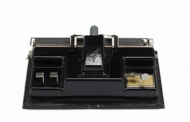 Schreibmaschine TipTip Eigenschaften: Zeiger, Typenzylinder, Oberanschlag, Farbband, Zeichenfeld Konstrukteur: Franz Hübl Besonderheit: erste in der ehemaligen Tschechoslowakei produzierte Schreibmaschine; austauschbarer Typenträger, Seriennummer 1933