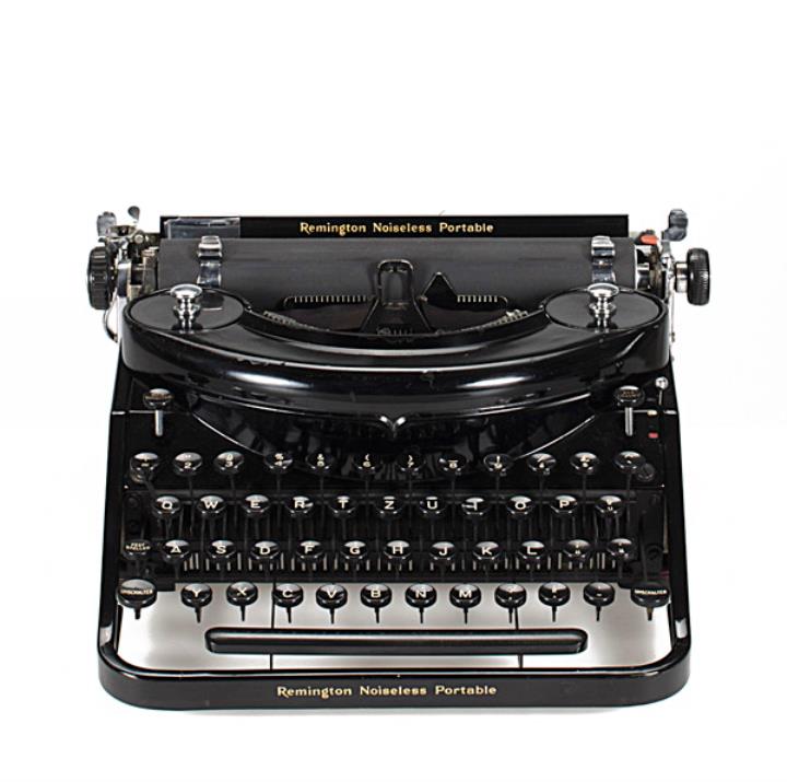 Schreibmaschine Remington Noiseless Portable Eigenschaften: Typenhebel, Vorderanschlag, einfache Umschaltung, Farbband Tastatur: universal, vierreihig, 44 Schreibtasten, Seriennummer N21335