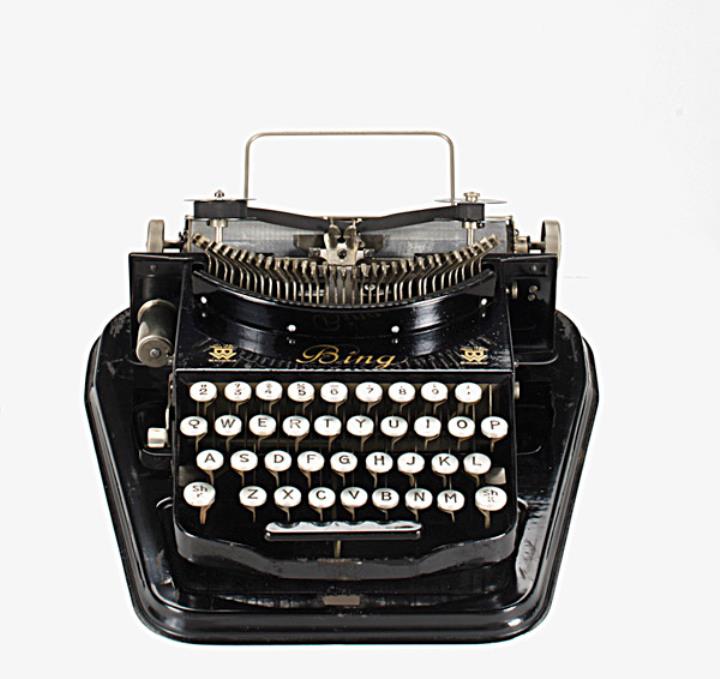 Schreibmaschine Bing Modell 2 Eigenschaften: Typenhebel stehend, Oberanschlag, einfache Umschaltung, Farbband Tastatur: universal, vierreihig, 35 Schreibtasten Konstrukteur: Ludwig Reischl Besonderheit: Gehäuse entspricht dem Modell 1