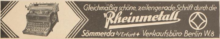 Werbeanzeige für Schreibmaschine Rheinmetall monochrom