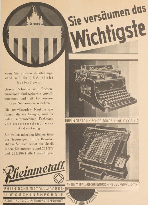 Werbeanzeige für Schreibmaschine Rheinmetall monochrom