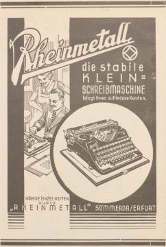 Werbeanzeige für Schreibmaschine Rheinmetall monochrom