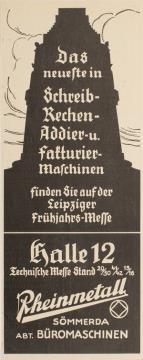 Werbeanzeige für Büromaschinen Rheinmetall monochrom