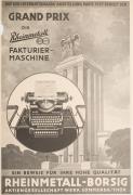 Werbeanzeige für Schreib- und Fakturiermaschine Rheinmetall monochrom