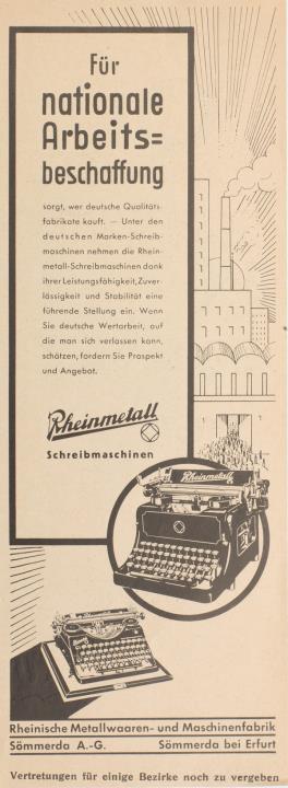 Werbeanzeige für Schreibmaschine Rheinmetall monochrom