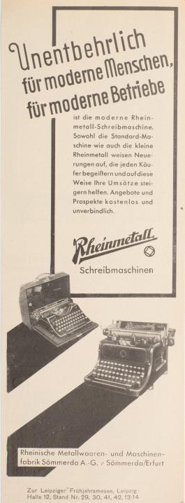 Werbeanzeige für Schreibmaschine Rheinmetall monochrom