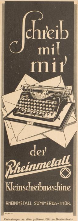 Werbeanzeige für Schreibmaschine Rheinmetall monochrom