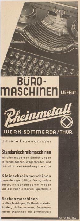 Werbeanzeige für Schreibmaschinen Rheinmetall monochrom