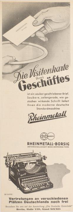 Werbeanzeige für Schreibmaschine Rheinmetall monochrom