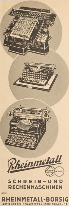 Werbeanzeige für Büromaschine Rheinmetall monochrom