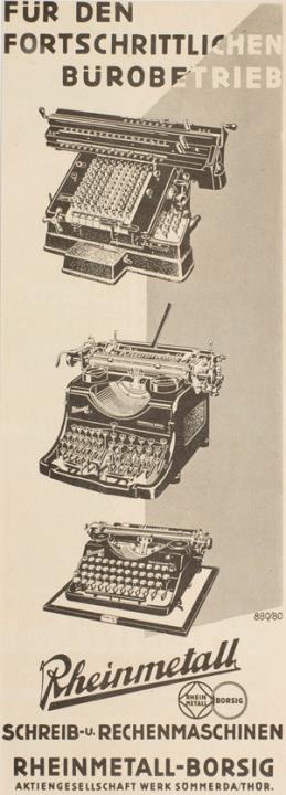 Werbeanzeige für Schreibmaschine und Rechenmaschine Rheinmetall monochrom