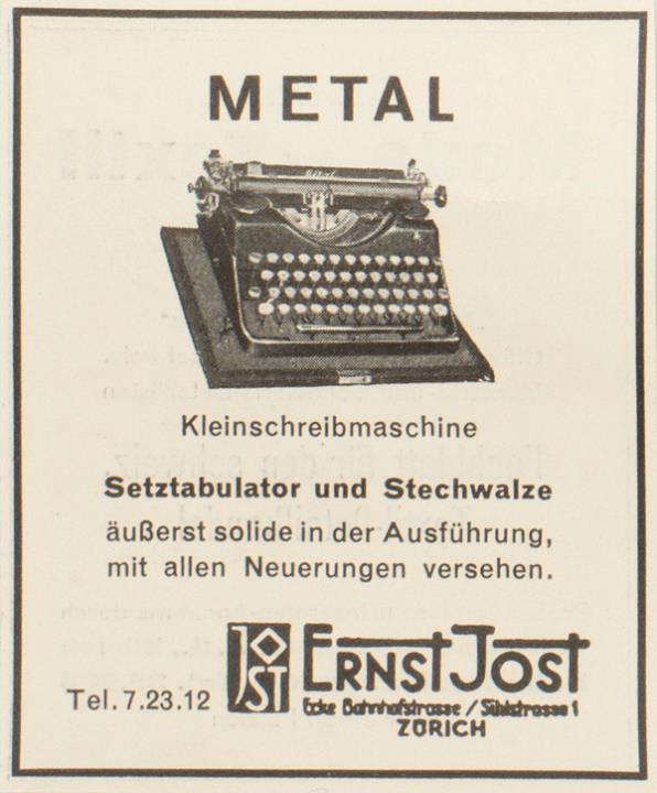 Metal Kleinschreibmaschine. Ernst Jost Zürich