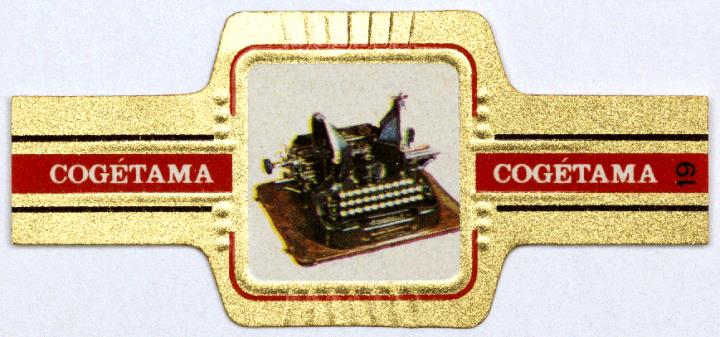 Zigarrenbanderole einer Serie (Cogétama); polychrom Nr. 19/24. Schreibmaschine Oliver 10, 1919