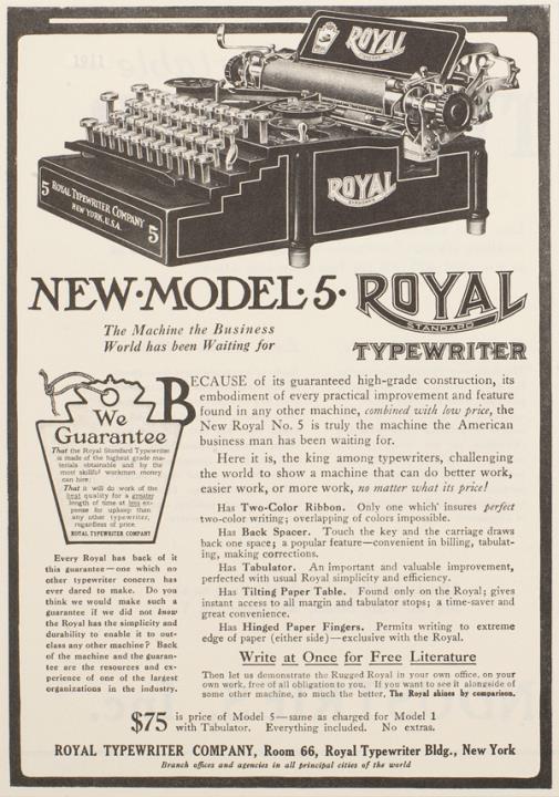 Werbeanzeige für Schreibmaschine Royal 5 monochrom