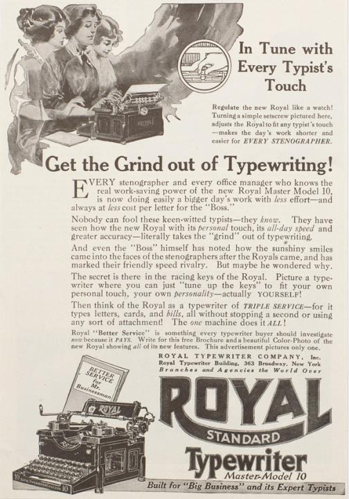 Werbeanzeige für Schreibmaschine Royal 10 monochrom
