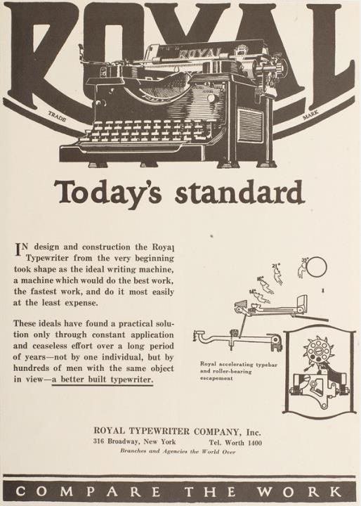 Werbeanzeige für Schreibmaschine Royal monochrom