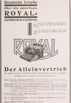 Werbeanzeige für Schreibmaschine Royal monochrom