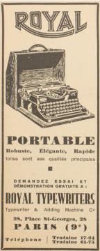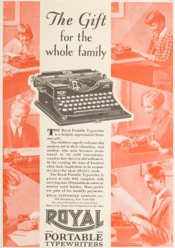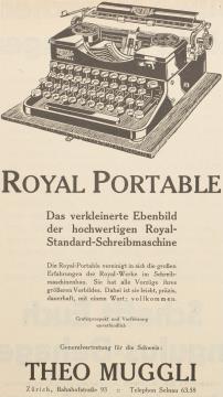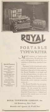 Werbeanzeige für tragbare Schreibmaschine Royal monochrom