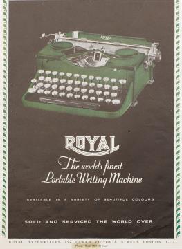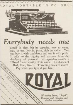 Werbeanzeige für tragbare Schreibmaschine Royal monochrom
