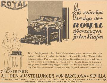 Werbeanzeige für Schreibmaschine Royal monochrom