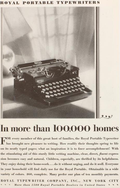 Werbeanzeige für tragbare Schreibmaschine Royal monochrom