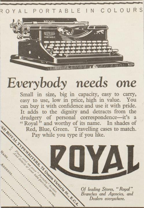 Werbeanzeige für Schreibmaschine Royal; auf Karton aufgeklebt monochrom